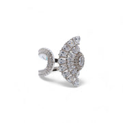 Radiant Fan-Shaped Zircon Ring - Rhodium / AAA+ Cubanian Zircon