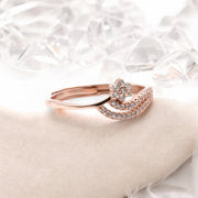 This elegant ring features a twisted band design with a delicate flower motif, adorned with sparkling zircons and plated in rose gold over 925 sterling silver. The graceful and sophisticated look makes it a perfect accessory for both special occasions and everyday wear.