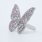 Silver Pink Baguette Butterfly Ring - 10 / Rhodium / Coloured Stone