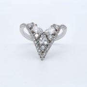This stunning ring showcases an elegant V-shape, adorned with a combination of marquise and round-cut zircons, all encased in high-quality 925 sterling silver. Its intricate design and dazzling stones make it a luxurious statement piece, perfect for elevating any ensemble with a touch of glamour.